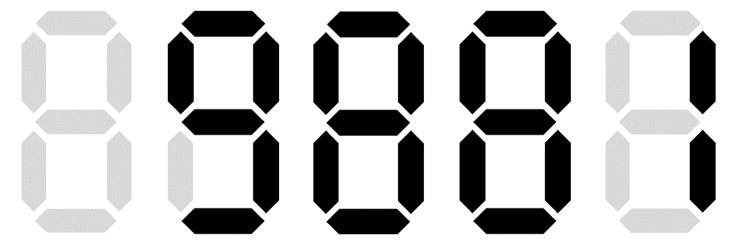 8자 모양의 전구 묶음은 0부터 9까지의 숫자를 표현할 수 있으며, 표현 방법은 아래와 같다. 아래 그림에서 전구가 켜졌으면 검정색, 꺼졌으면 옅은 회색으로 표현되었다.